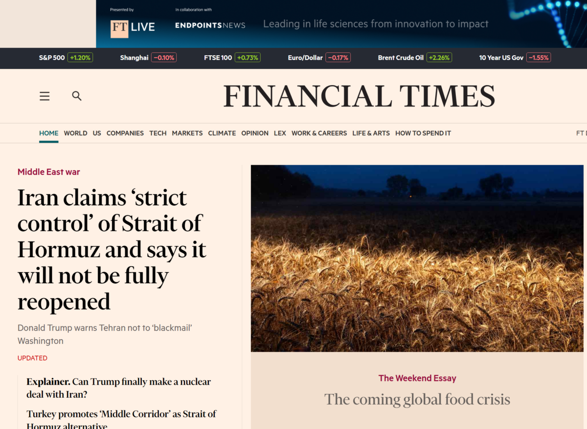 "Coming Food Crisis" Predicted in Financial Times Essay