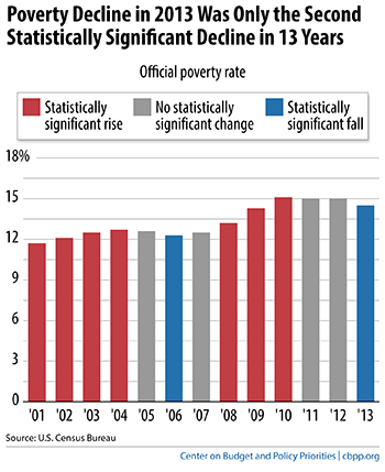 Poverty fell and health coverage improved in 2013, but economic recovery is slow to reach many Arloc Sherman, Danilo Trisi, and Matt Broaddus Center for Budget and Policy Priorities September 22, 2014 Number of children living in poverty drops sharply, Census Bureau says Robert Pear New York Times September 16, 2014 See full report: Income and Poverty in the United States 2013 (72 page PDF file)