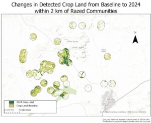 Using themal imaging, the Humanitarian Research Lab (HRL) at Yale University has recently published evidence of attacks against civilians Darfur.  Yales’s new HRL report provides detail of targeted burning, destruction and razing of 41 agrarian villages northwest of El-Fasher in darfur.  These communities were ethnically Zaghawa who produce food for the region, but following attacks, they halted agricultural work.  The Yale lab report finds:  “decreases in agricultural activity during the growing period following the razing of communities assessed through year-on-year changes in land use/land cover.”
