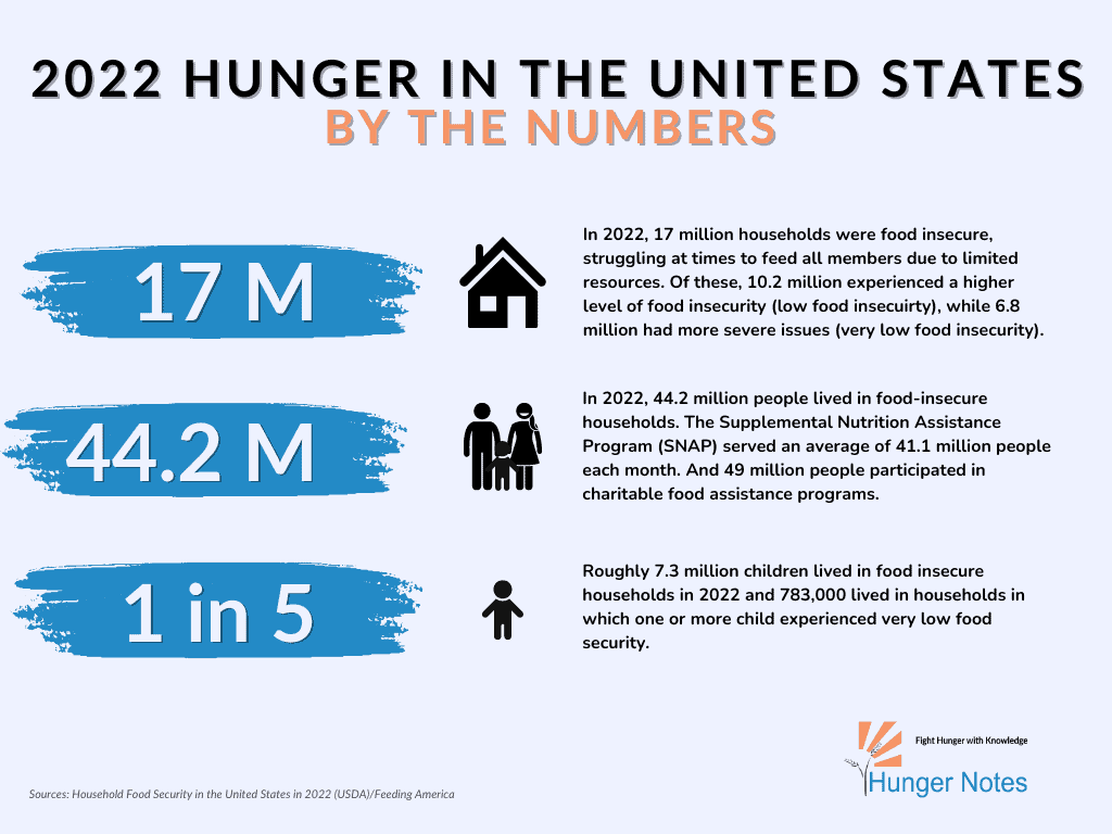 Graphic of U.S. Food Insecurity. 17 million households in the U.S. were food insecure in 2022.